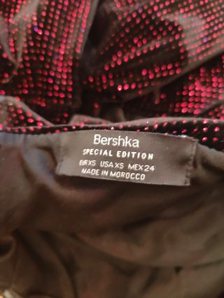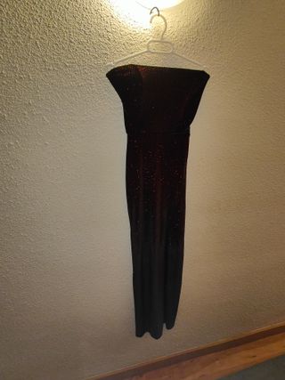 Vestido de Bershka con un diseño especial y detalles brillantes. - Corte strapless. - Largo hasta el suelo. - Tejido con efecto brillante.