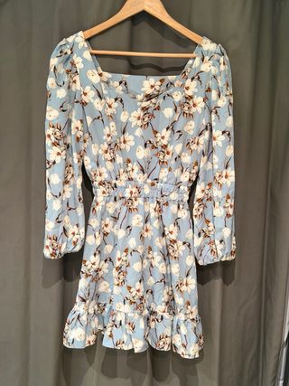 Vestido de Mango con estampado floral. - Diseño con cuello en V. - Manga larga. - Cierre de botones.