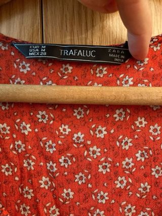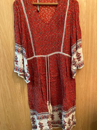 Vestido de estilo boho de Zara con un bonito estampado. - Diseño con escote en V. - Mangas acampanadas. - Detalle de cordón con borlas en la cintura. - Estampado floral en tonos rojos y blancos.