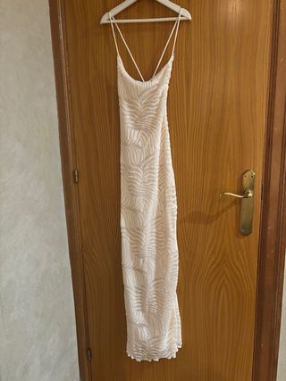 Vestido largo de tirantes con un tejido brillante y acanalado. - Diseño ajustado. - Tirantes finos. - Tejido con hilo metálico.