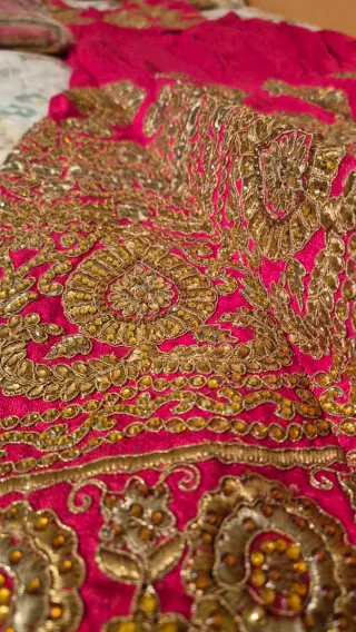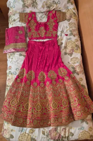 Sin usar, se vende en su embalaje original. Precioso vestido indio para bodas. - Diseño con bordados dorados. - Falda larga y fluida. - Parte superior a juego.