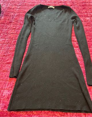 Vestido negro de manga larga con escote en pico y tejido acanalado. El corte favorece la figura. - Tejido acanalado. - Manga larga. - Escote en pico.