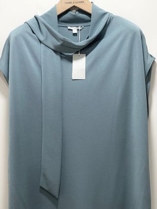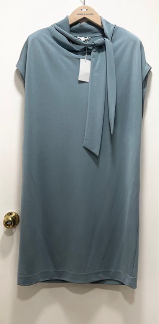 Vestido en tejido de punto verde agua con lazada en cuello COS Corte oversize /Sisa amplia Talla M pecho: 60 cm x largo:1,03 cm