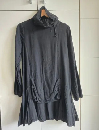 Vestido de Lurdes Bergada negro manga larga y cuello alto. Talla S, cuello estrecho, ver fotos. Bolsillo frontal Falda con mucho vuelo.