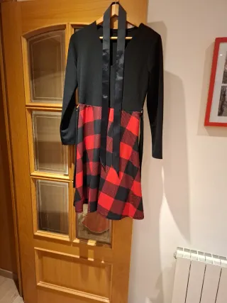 Vestido de largo por debajo de la rodilla con un diseño de cuadros. - Diferentes colores y estampados - Parte superior negra. - Falda con estampado de cuadros rojos y negros. - Mangas largas.