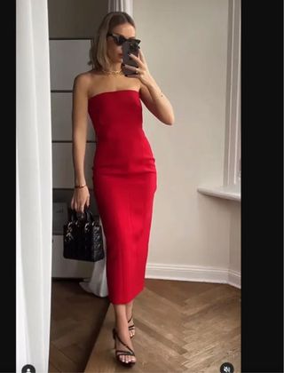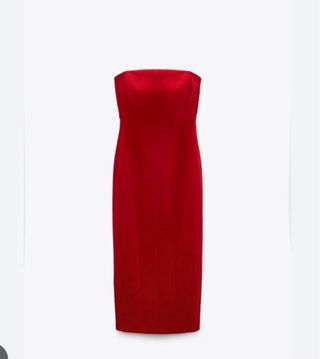 Elegante vestido midi de Zara, perfecto para cualquier ocasión especial. - Diseño sin tirantes. - Corte ajustado. - Largo midi.
