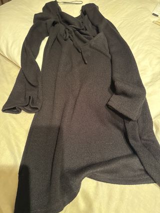 Vestido corto de tejido con mangas largas y escote en la espalda. - Diseño de punto. - Mangas largas. - Escote con tiras cruzadas.