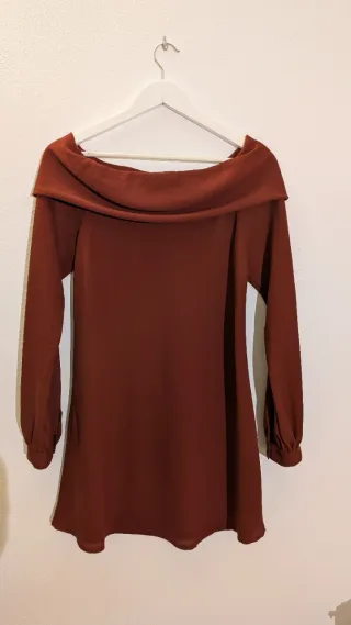 Vestido burdeos escote Bardot manga larga