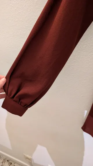 Precioso y elegante vestido de manga larga y fruncido en color rojo oscuro. Con bonito detalle de pedrería plateada en escote. De la marca Morgan de Toi. Talla XS Aún con la etiqueta de tienda, a estrenar (pero no tiene la etiqueta de la composición) Ver guía de tallas de Morgan en ultima foto. PARA ENVIAR O PARA ENTREGAR EN BARCELONA