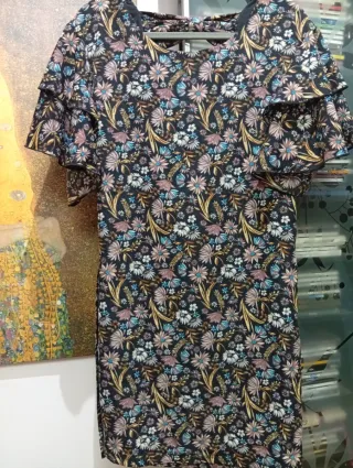Vestido Zara floral azul y rosa