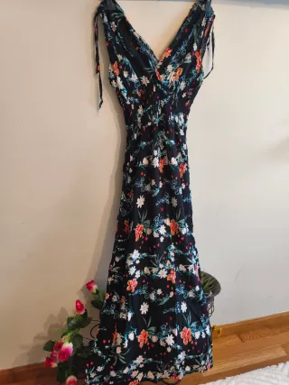 Vestido largo con un llamativo estampado floral. - Diseño maxi. - Tejido ligero y fluido. Talla unica s,xl no se hacen cambio ni devoluciones