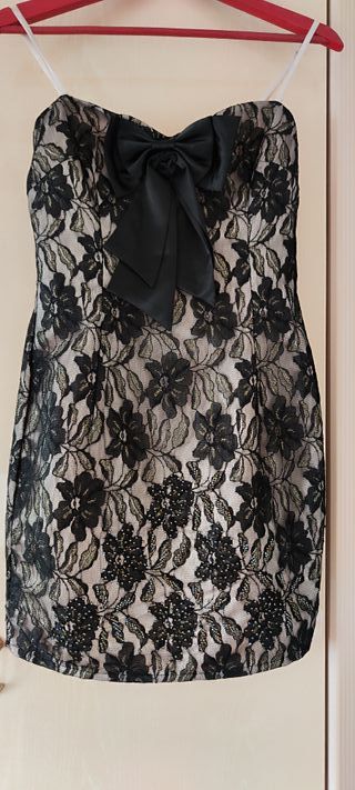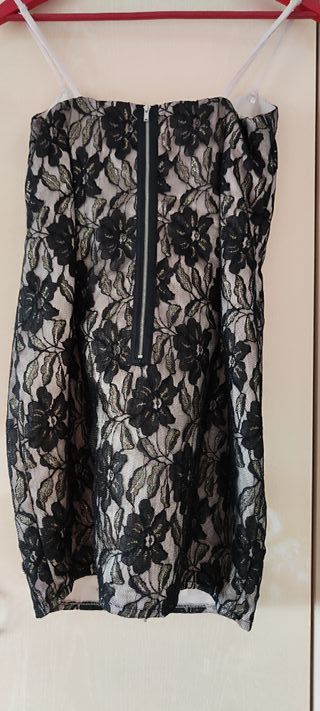 Elegante vestido de alta calidad de invitada boda o ocasiones especiales. Largo 70 cm. Talla aprox 32 / 34. No es elástico. Tiene forro interior y el exterior tiene bordado con detalles. No se realizan envios