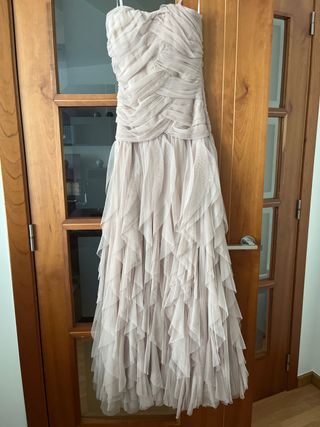 Vestido fiesta largo tul beige Formula Joven