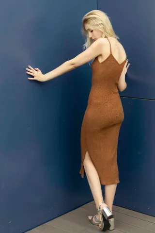 Vestido largo marrón de tiras