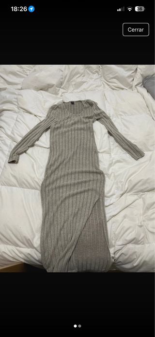 Vestido gris cuello alto manga larga