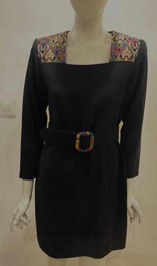 Vestido negro con bordado multicolor