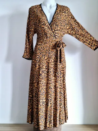 Vestido largo de mujer de la firma JOT con manga larga y acampanada a partir del codo. Tejido elástico con una caída y movimiento sin igual, con un estampado de cocodrilo en tonos beige y taupe. Con lazada a la espalda para entallar y nudo en la parte delantera central que le da un aire muy sofisticado. Perfecto para todo tipo de eventos especiales o el día a día. Talla Única Va muy bien a una M y L Medidas en fotos NUEVO A ESTRENAR con 🏷 - Pvp original 90€ - Descuento aplicado 50% - No negociable Más artículos en mi perfil 🫠