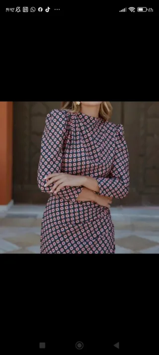 Vestido Midi con un estampado llamativo. Queda muy bonito puesto, está sin estrenar con etiqueta puesta. No pude estrenarlo porque hubo cambio de planes y tuve q poner otro vestido para la ceremonia - Diseño con cuello. - Mangas largas. - Largo mini.