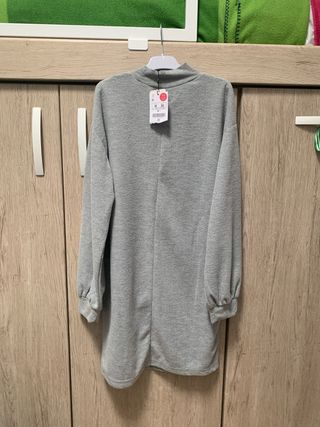 Vestido gris de manga larga, ideal para estar cómoda y arreglada. - Tejido suave y calentito. - Diseño sencillo y versátil.
