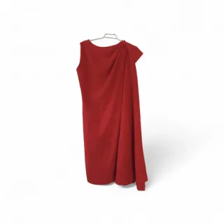 Elegante vestido rojo con un diseño de capa - Corte recto - Tejido ligero - Largo midi.