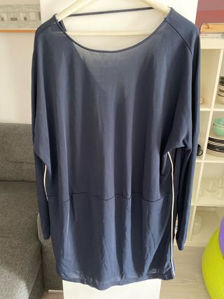 De sisa a sisa mide 50 cm, y da para bastante pecho, lleva goma en cintura y en cadera mide 67 cm. De largo 90 cm. Nuevo completamente