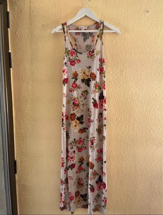 Vestido largo con estampado floral. Se adapta al cuerpo. - Diseño sin mangas. - Largo hasta los tobillos.