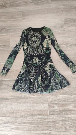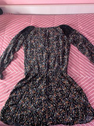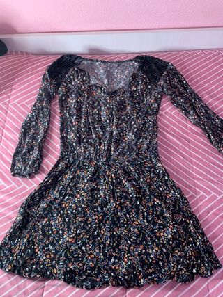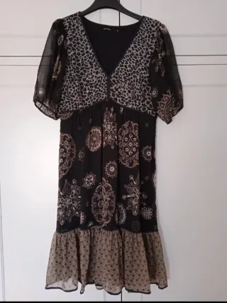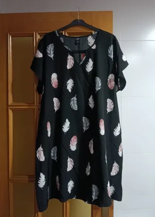 Vestido negro con un bonito estampado de plumas. Mide 63 cm de ancho y de largo 95 cm. Totalmente nuevo.