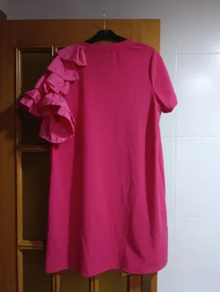 Vestido de color rosa fucsia con un diseño moderno y llamativo. Mide 55 cm de sisa a sisa, 62 en cadera. De largo 95 cm. Precioso y completamente nuevo, a estrenar. Shein Curve 1XL