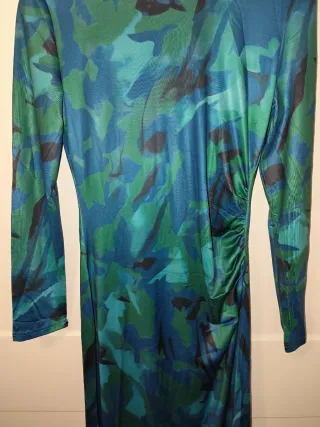 Vestido de manga larga con un bonito estampado floral. El diseño es elegante y llamativo. - Manga larga acampanada. - Escote redondo. - Largo hasta la rodilla. -solo puesto unas horas