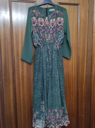 Vestido largo con un bonito estampado floral. Ideal para cualquier ocasión. - Diseño con tirantes finos. - Cintura elástica para un mejor ajuste. - Falda larga y fluida. - Solo usado una vez
