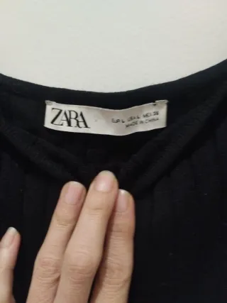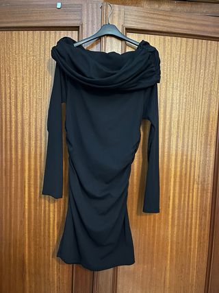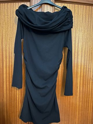Vestido largo ajustado de canalé en color negro. Talla L. Marca Zara. Manga larga. Escote de barco. Con dos aperturas laterales a la altura de la cintura. Está en perfecto estado.