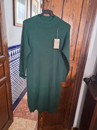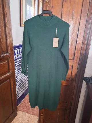 Vestido de punto en color verde, con etiqueta. - Tejido suave y agradable. - Diseño de cuello redondo. - Manga larga.