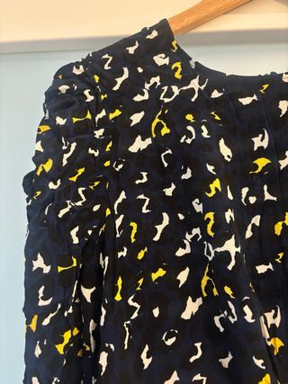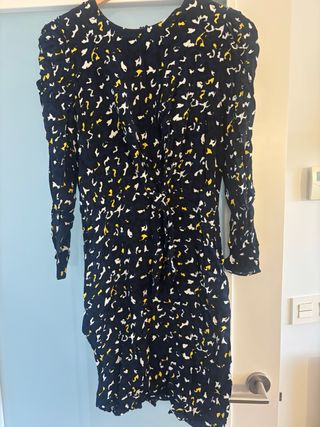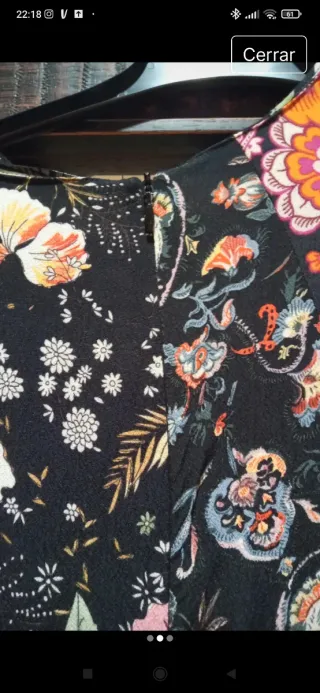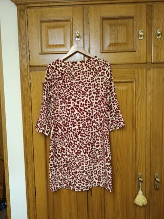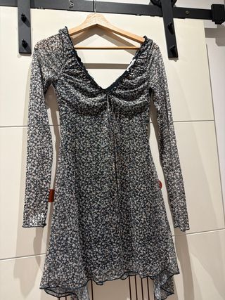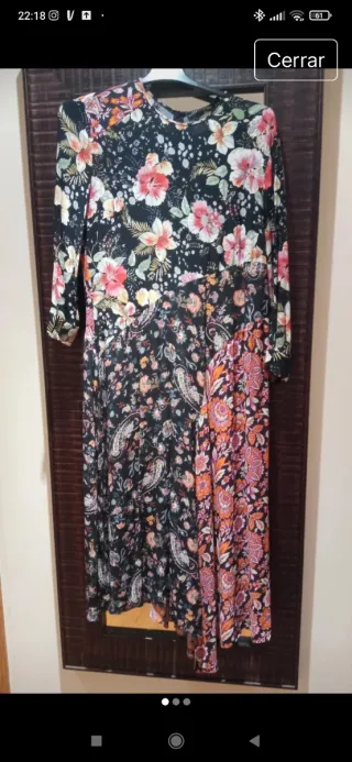Vestido de manga larga con estampado floral. - Diseño con escote en V. - Tejido ligero y transparente. - Detalle de volantes en el escote y puños. Al quitarle la etiqueta lo he roto. Muestro en la foto, solo lo use 1 ves