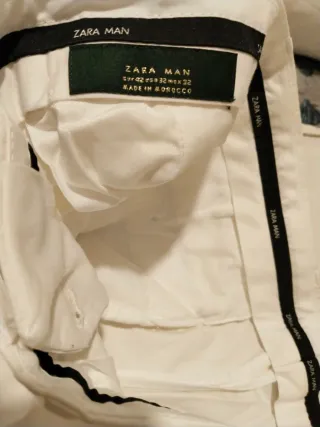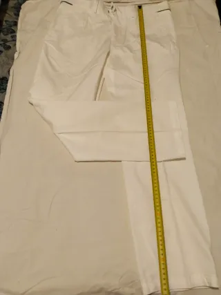 Pantalón de vestir para hombre en color blanco. Un básico para cualquier armario. - Corte recto. - Tejido de algodón. - Cierre con cremallera y botón. Largo 97cm