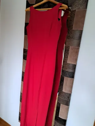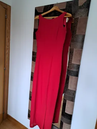 Elegante vestido largo de fiesta en color rojo. Ideal para eventos especiales. - Diseño sin mangas. - Corte recto y favorecedor. - Tejido ligero y fluido.