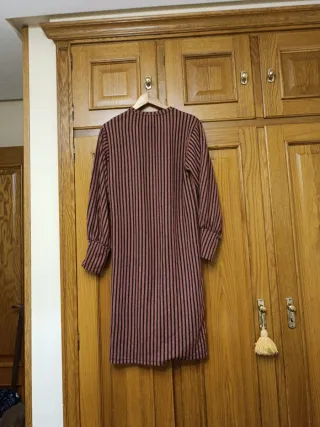 Vestido con un diseño de rayas verticales. - Mangas largas. - Cuello redondo. - Largo hasta la rodilla.