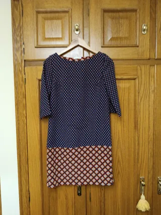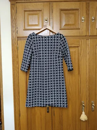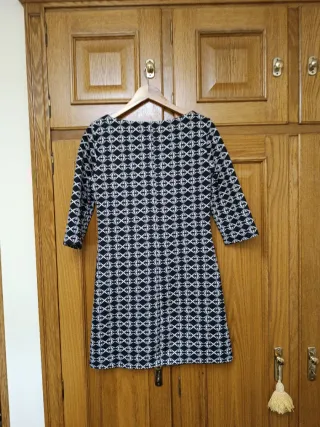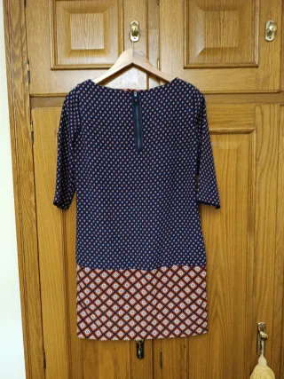 Vestido con un llamativo estampado geométrico. - Diseño de manga tres cuartos. - Cuello redondo. - Largo hasta la rodilla.