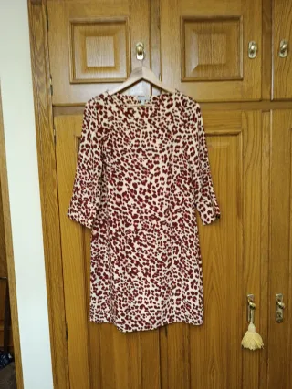 Vestido con un llamativo estampado de leopardo. - Diseño de manga corta. - Largo hasta la rodilla. - Tejido ligero y cómodo.