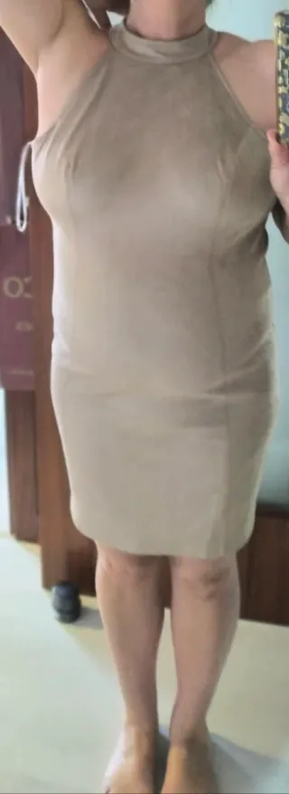 Vestido de la marca Guess, sin estrenar y con etiqueta. - Diseño de cuello halter. - Largo a la rodilla. - Color beige. - Tanto para invierno como para verano. - Muy lucido - Toda la tela con el dibujo de la marca. Tela como ante. - No pasa de moda. - Puedes ver el precio en la etiqueta.