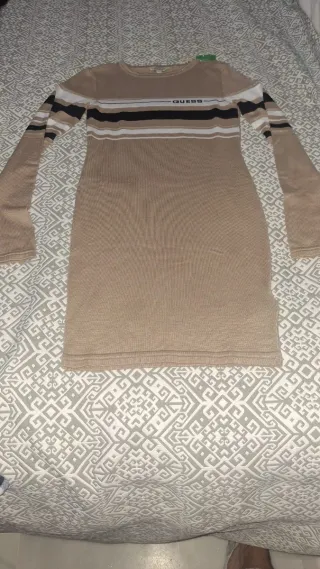 Vestido de manga larga con un diseño de rayas deportivas. - Diseño de rayas horizontales en blanco, negro y beige. - Logo de la marca en el pecho. - Corte ajustado. Precio negociable