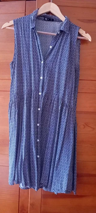 Vestido camisero sin mangas con un bonito estampado. - Cuello camisero. - Cierre de botones. - Cintura elástica. - Largo hasta la rodilla.