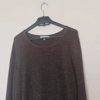 Vestido de fiesta con lentejuelas brillantes, ideal para celebraciones. Aún conserva su etiqueta original. - Diseño con cuello alto. - Manga larga. - Acabado metalizado.