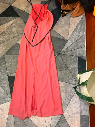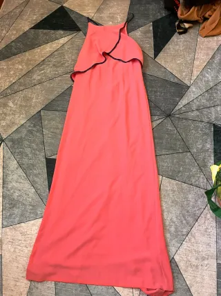 Elegante vestido de fiesta largo. - Diseño con escote halter. - Cintura marcada. - Falda fluida con caída. Esta sin estrenar pero le faltan las etiquetas porque esta arreglado para adaptarlo a una medida de 1,62, talla XS Se puede ver sin compromiso