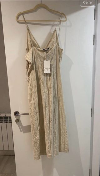 Vestido largo de Zara con un diseño drapeado en la parte delantera. - Tirantes finos. - Escote pronunciado. - Tejido con textura.