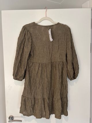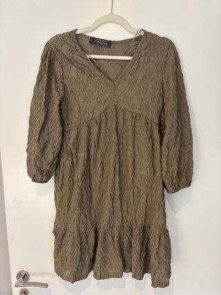 Vestido camisero de Zara con un diseño moderno y cómodo. - Cuello mao con detalle de pliegues. - Cierre de botones frontales. - Mangas largas con puño. - Corte recto y favorecedor.