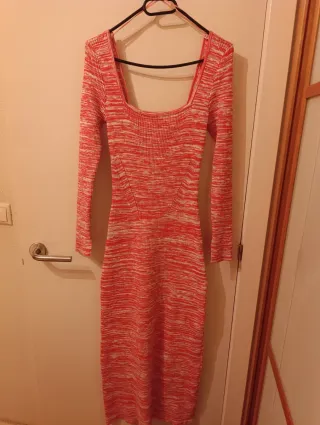 Vestido de punto con un divertido estampado de naranjas. - Diseño oversize. - Manga larga. - Cuello redondo. Está en muy buen estado. Muy cómodo de llevar. Talla única. Se lava en lavadora. Mido 1'60 y me llega a la rodilla.Está en muy buen estado. Tiene un pequeño defecto de costura en parte de atrás del cuello que no se suelta (última foto)