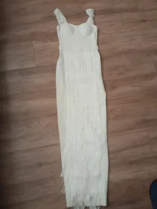 Vestido largo blanco con un diseño de tirantes finos y falda escalonada. Esta nuevo no se ha usado.