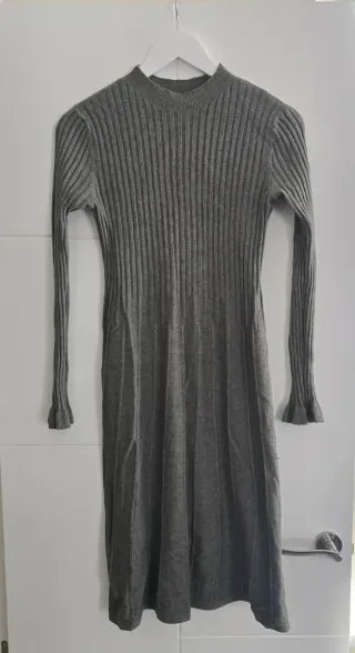 Vestido de punto largo en color gris de Springfield. Con cuello alto y manga larga. - Tejido de punto suave. - Largo hasta los tobillos. - Cordón incluido. Accesorios no incluidos en el precio.