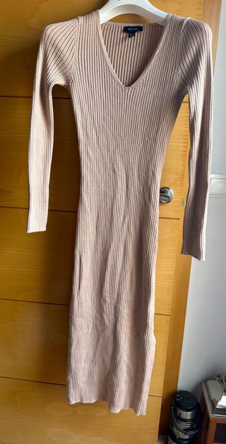 Vestido de punto beige largo