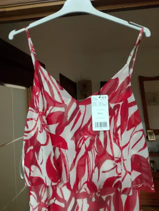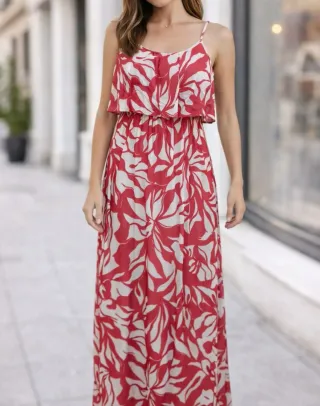 Elegante vestido largo con un estampado floral vibrante. Perfecto para ocasiones especiales o un día soleado. Precio real 60€ - Diseño con tirantes finos. - Cuerpo fruncido en la cintura. - Falda larga y fluida.